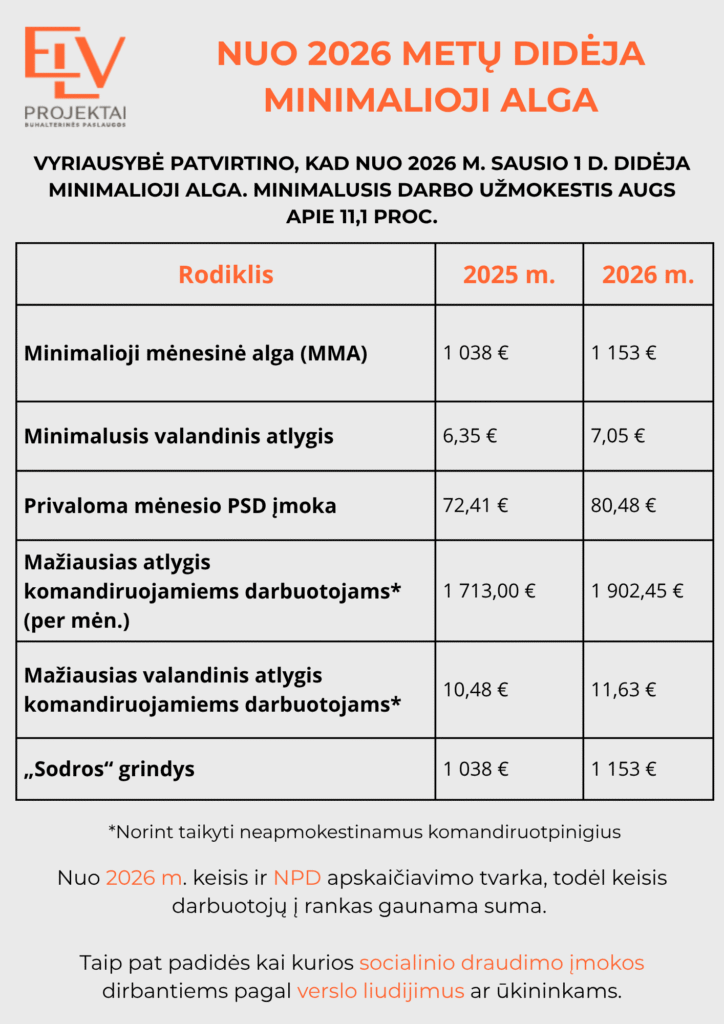 | Minimalioji mėnesinė alga (MMA) | 1 038 € | 1 153 € |