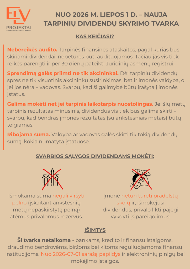Nuo 2026 m. liepos 1 d. – nauja tarpinių dividendų skyrimo tvarka